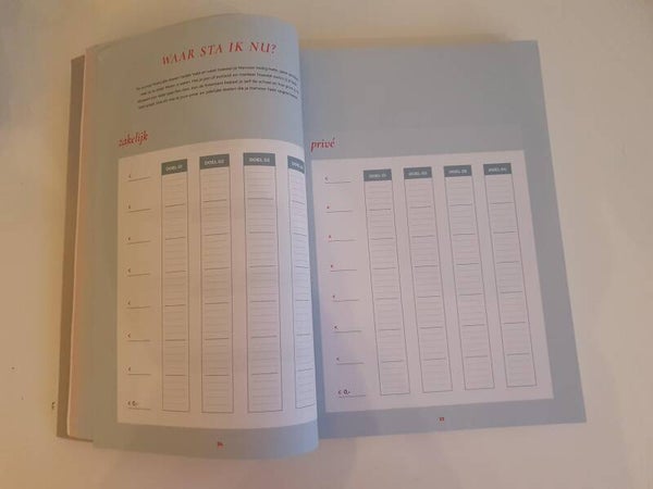 Let the money flow van Simone Levie stelt je in staat om voor jouw bedrijf en privé doelen te stellen en deze te evalueren. Een mooi vormgegeven en fijn werkbaar kasboek voor jouw bedrijf.