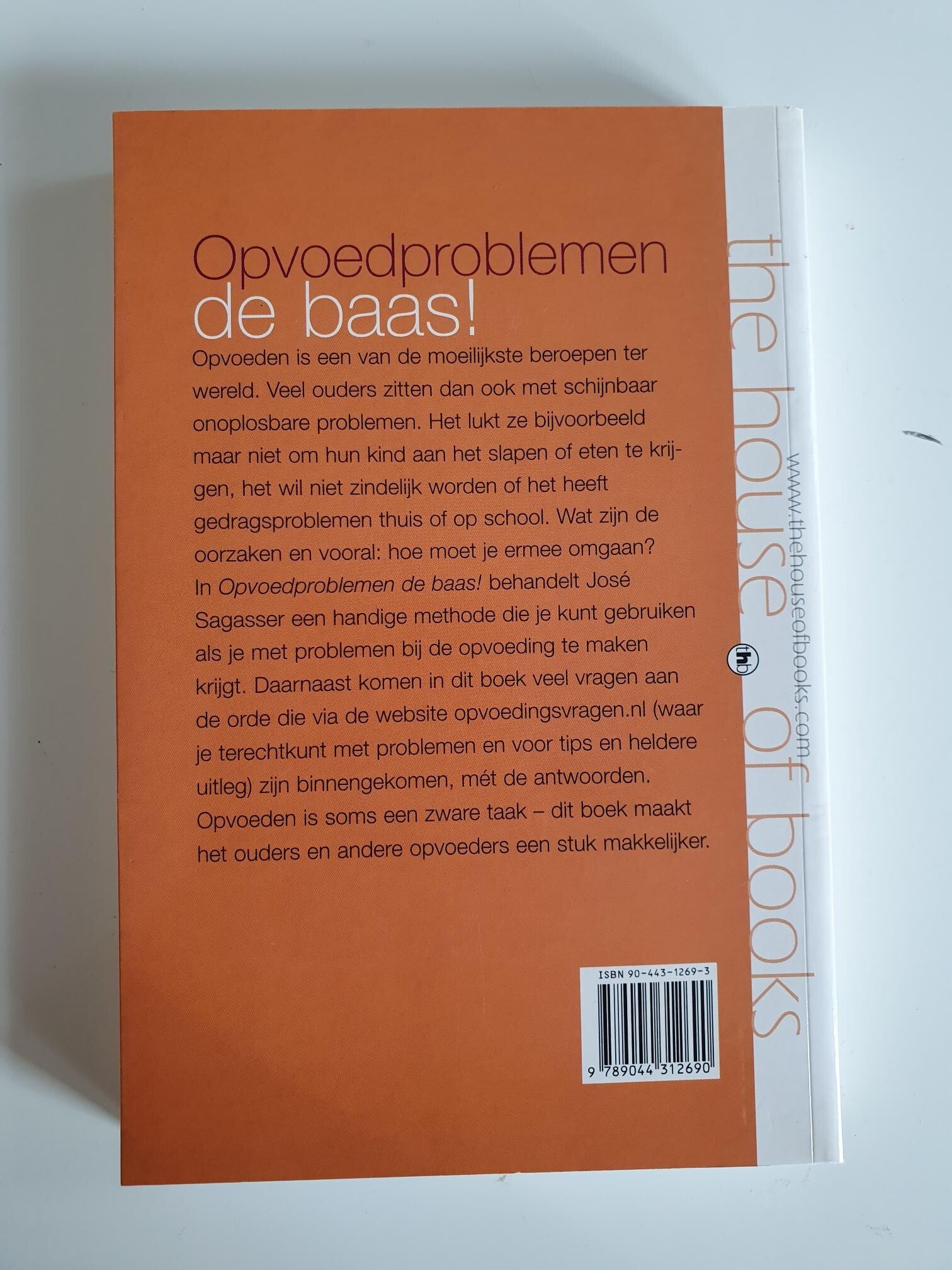 Opvoeden is een van de moeilijkste beroepen ter wereld. Veel ouders zitten dan ook met schijnbaar onoplosbare problemen. Het lukt ze bijvoorbeeld maar niet om hun kind aan het slapen of eten te krijgen, het wil niet zindelijk worden of het heeft gedragsproblemen thuis of op school. Wat zijn de oorzaken en vooral: hoe moet je ermee omgaan? In 'Opvoedproblemen de baas!' behandelt José Sagasser een handige methode die je kunt gebruiken als je met problemen bij de opvoeding te maken krijgt. Daarnaast komen in dit boek veel vragen aan de orde die via de website opvoedingsvragen.nl (waar je terecht kunt met problemen en voor tips en heldere uitleg) zijn binnengekomen, mét de antwoorden. Opvoeden is soms een zware taak - dit boek maakt het ouders en andere opvoeders een stuk gemakkelijker.
