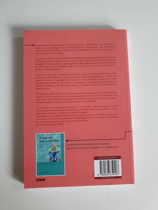 In Luister je wel naar mij? beschrijft Martine Delfos hoe een gesprek met vierjarigen, achtjarigen of twaalfjarigen gevoerd kan worden. Moet je praten en spelen tegelijk? Welke vraagtechnieken zijn op welke leeftijd geschikt? Hoe schat ik de mentale leeftijd van een kind in? Hoe zorg je dat het kind een optimale getuige is?