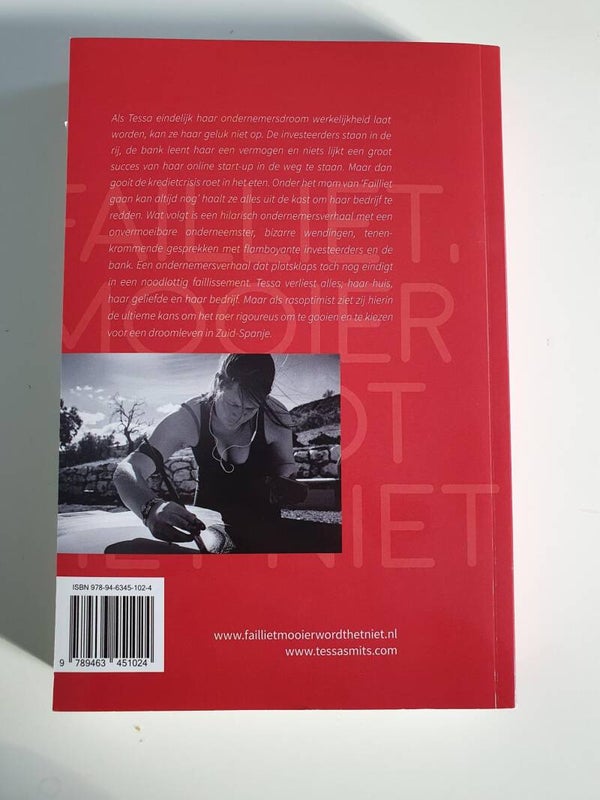Als Tessa eindelijk haar ondernemersdroom werkelijkheid laat worden, kan ze haar geluk niet op. De investeerders staan in de rij, de bank leent haar een vermogen en niets lijkt een groot succes van haar online start-up in de weg te staan. Maar dan gooit de kredietcrisis roet in het eten. Onder het mom van ‘Failliet gaan kan altijd nog’ haalt ze alles uit de kast om haar bedrijf te redden. Wat volgt is een hilarisch ondernemersverhaal met een onvermoeibare onderneemster, bizarre wendingen, tenenkrommende gesprekken met flamboyante investeerders en de bank. Een ondernemersverhaal dat plotsklaps toch nog eindigt in een noodlottig faillissement. Tessa verliest alles; haar huis, haar geliefde en haar bedrijf. Maar als rasoptimist ziet zij hierin de ultieme kans om het roer rigoureus om te gooien en te kiezen voor een droomleven in Zuid-Spanje.